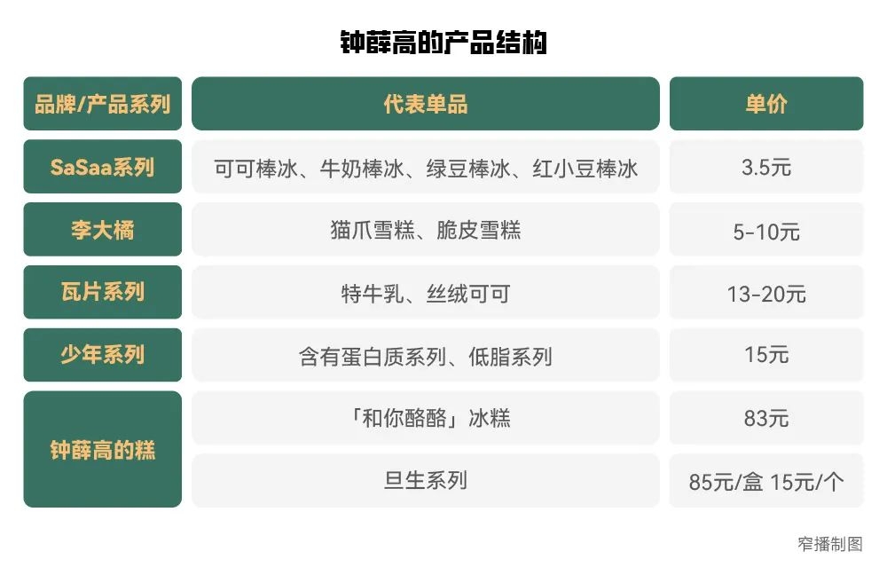 钟薛高的产品结构